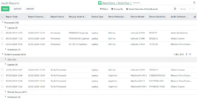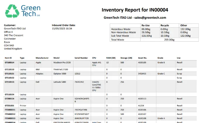 Create unlimited "Snapshots" for each item, starting with customer supplied information (where present), and then from manual inspections and readings from hardware auditing tools (such as GlobalErasure, Aiken Workbench, Blancco, Certus etc.)