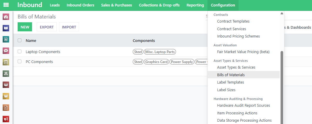 Recycly already knows about the following standard ITAD components, so it is not necessary to define BoMs for these: