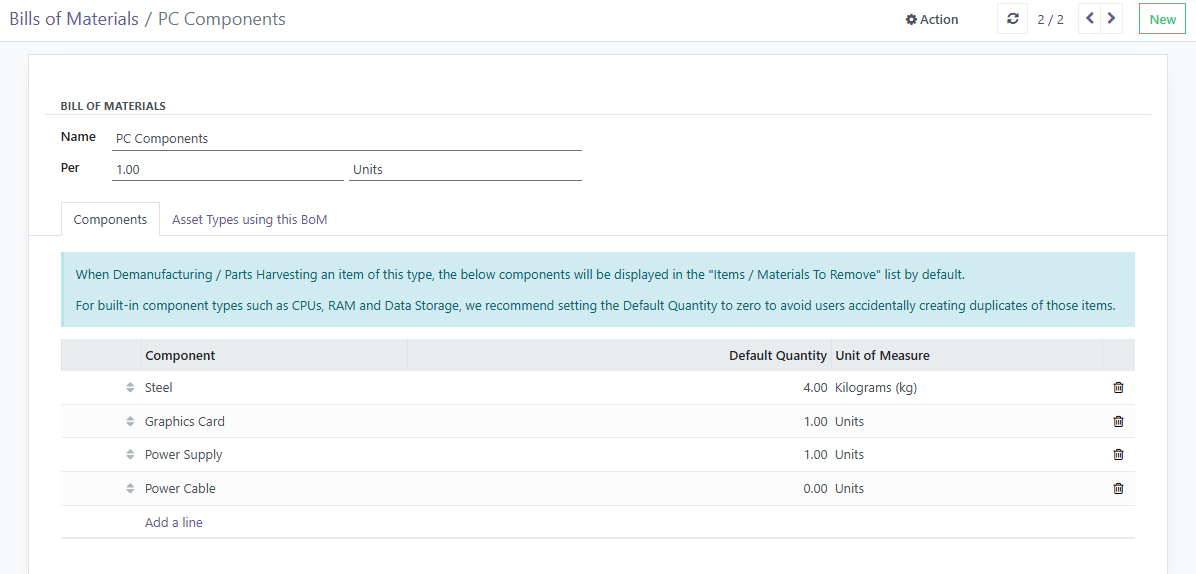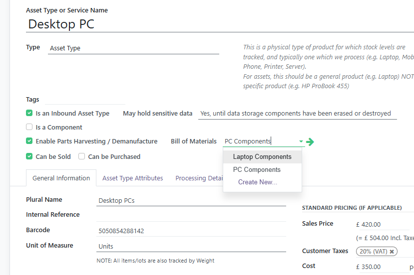 It is common to remove other components from devices, and for these you can define Bills of Materials, to help when you come to Parts Harvest / Demanufacture those items.